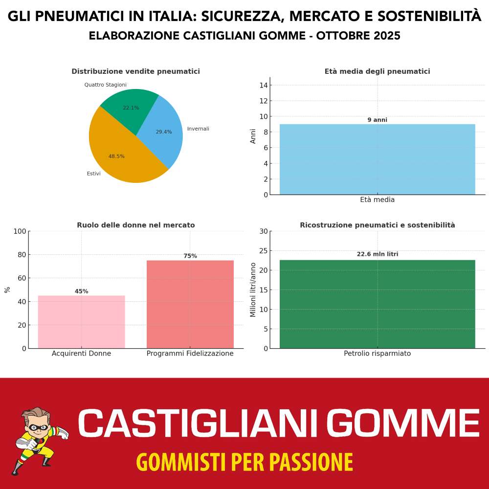 Un numero però fa riflettere: l’età media delle gomme in Italia è di 9 anni, segno che molti automobilisti continuano a circolare con pneumatici vecchi e potenzialmente pericolosi.